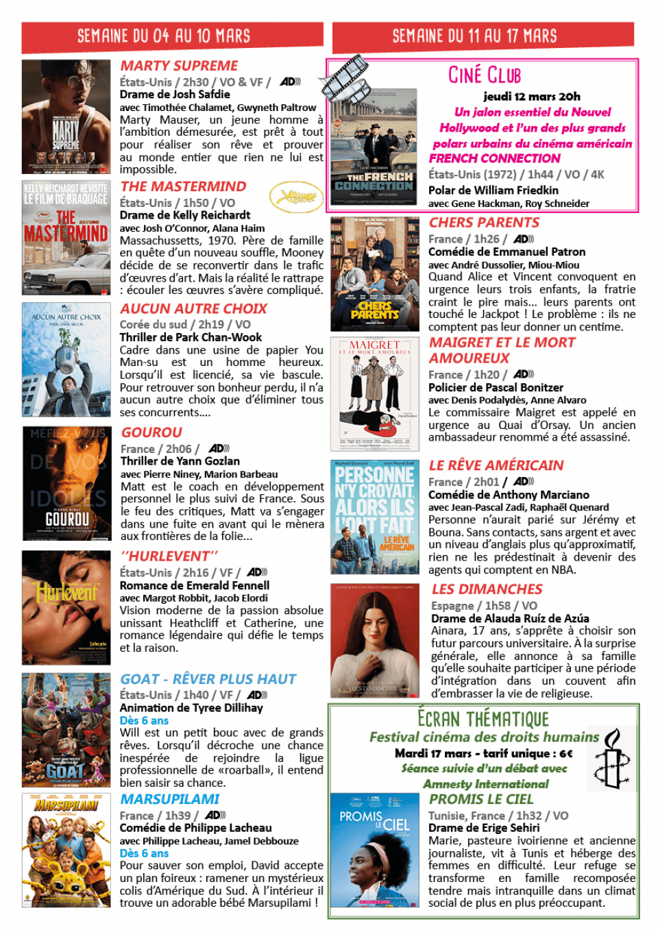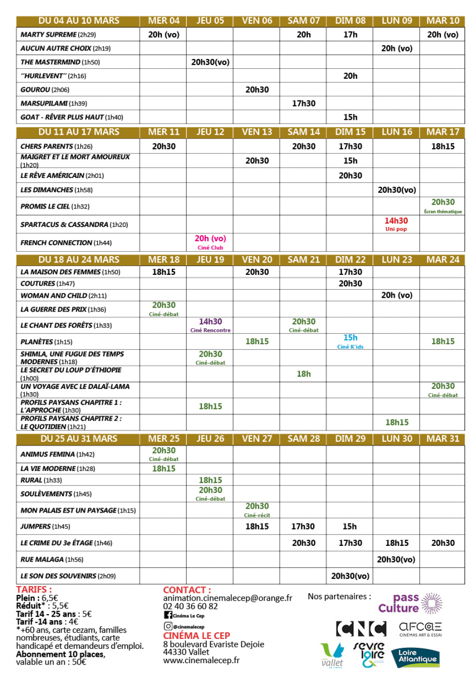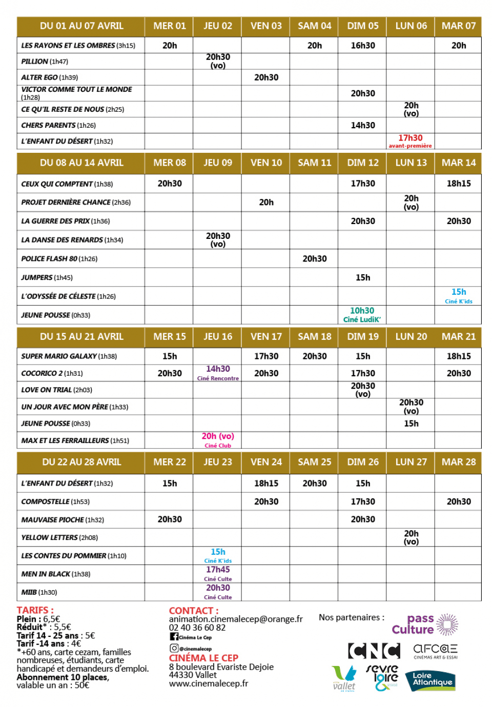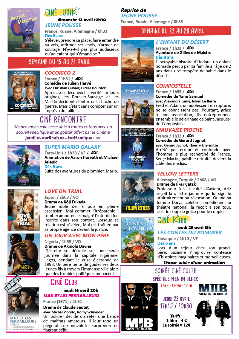 Les films, les animations, les événements, tout est dans le programme !